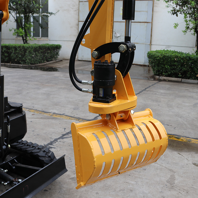 Le godet tamis est un accessoire pour pelles, conçu pour tamiser le sol, le sable ou les déchets de construction, permettant la séparation et le classement des matériaux. Il offre une opération efficace et une structure robuste, largement utilisé dans la construction, l’exploitation minière et l’aménagement paysager.