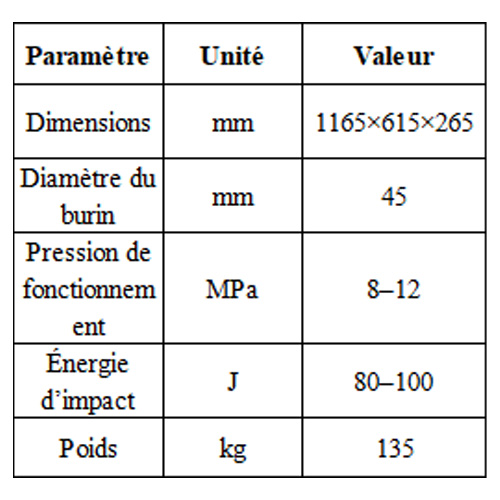 Construction robuste : Le corps du marteau et le cadre de montage sont fabriqués en acier haute résistance et résistant à l’usure, avec des composants internes critiques renforcés pour résister aux impacts prolongés et aux conditions de travail difficiles, garantissant une fiabilité durable.