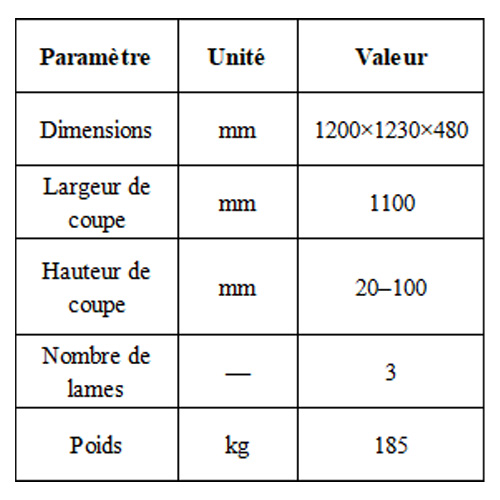 Structure en acier haute résistance : Le corps et le plateau de coupe sont soudés en acier résistant à l’usure, assurant une haute résistance aux chocs et une utilisation fréquente à long terme.