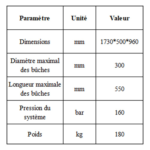 Il possède une force de poussée puissante et peut fendre facilement du bois dur, du bois humide et des rondins de grand diamètre, améliorant l’efficacité du traitement. -