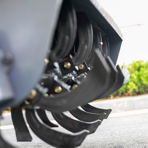 Profondeur et angle réglables : Permet d’ajuster facilement la profondeur de travail et l’angle des lames selon les conditions du sol, garantissant un travail uniforme et une préparation de sol de qualité.