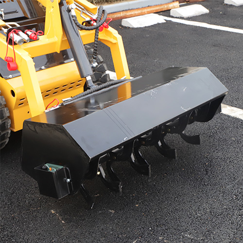 Fraisage et ameublissement puissants : Équipée de lames rotatives en acier haute résistance et entraînée par le système hydraulique de la chargeuse, elle brise rapidement les sols compactés, émiette les mottes et améliore l’aération du sol.