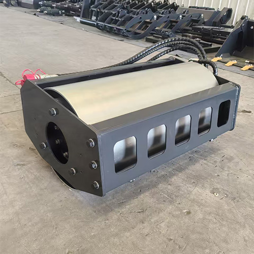 Équipé d’un rouleau en acier haute résistance et alimenté par le système hydraulique de la chargeuse compacte, l’accessoire fournit une pression stable permettant de compacter uniformément le sol, le gravier, les granulats et autres matériaux, améliorant ainsi la planéité et la capacité portante du terrain.